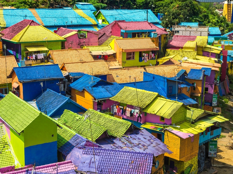 - Continuez vers Jodipan, le village arc-en-ciel de Malang, où les ruelles peintes offrent un spectacle haut en couleur.